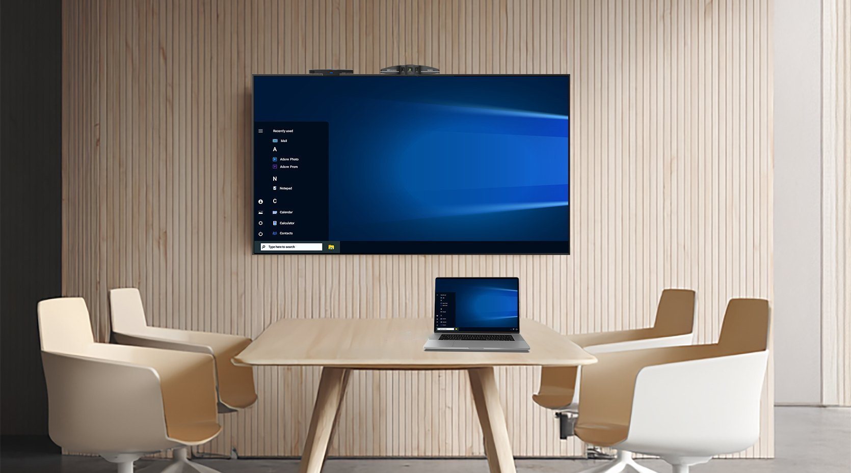 Now, picture this: you walk into the meeting room with just your laptop. You sit wherever you like, cast your screen onto the big display in seconds, and start your video call as the camera automatically frames everyone in view. No tangled wires, no setup delays. Simple, smart, and smooth—just the way meetings should be.