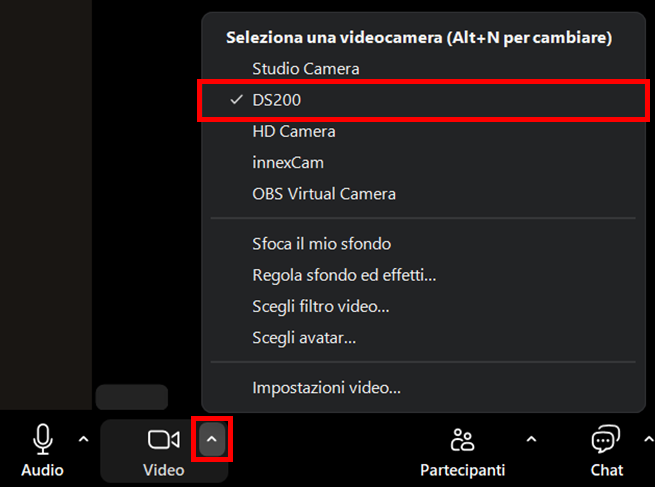 Si prega di tenere acceso il software Innex Studio durante la videochiamata. Nelle impostazioni della fotocamera, seleziona “Studio camera” come fotocamera, invece di selezionare “Fotocamera Innex C831”.